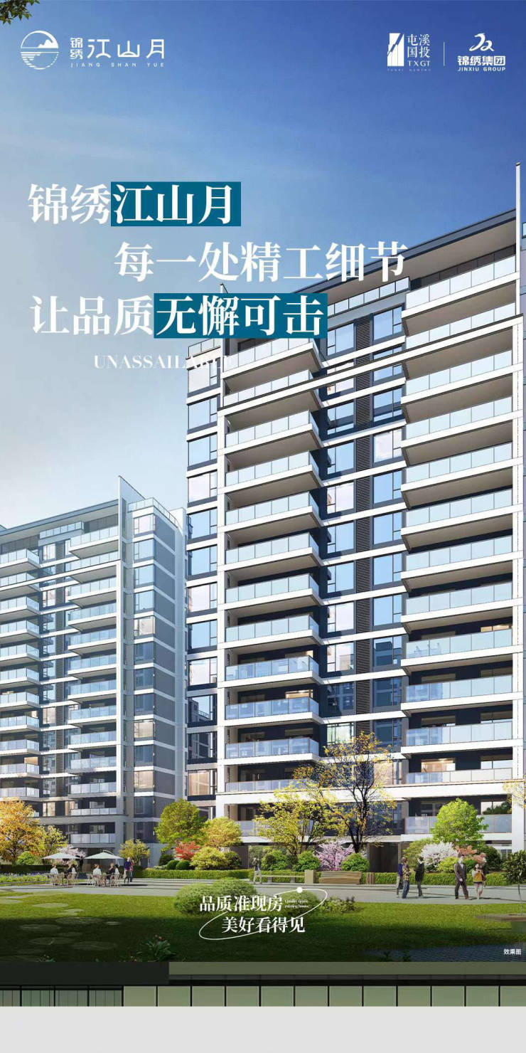 锦绣江山月,每一处精工细节,让品质无懈可击,即将准现房呈现。建面约87-144㎡市芯低密美宅热售中,均价12500元/㎡。