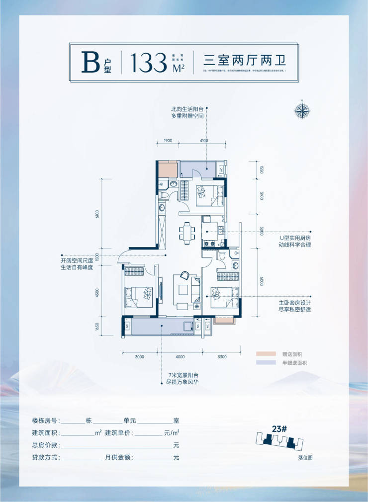 产品设计上,23#楼也进行了优化与升级,建面约130-150㎡的户型空间,深度洞察现代家庭生活的每一个细微需求,合理的空间布局,让您的居住环境更显豪华与舒适。通厅设计,不仅拓宽了视觉边界,让空间更加开阔明亮;宽景阳台完美过渡室内与自然,尽情享受江景风光带来的惬意与舒适;生活储物空间人性化的设计,让家的每一个角落都显得井然有序,提升整体生活品质。