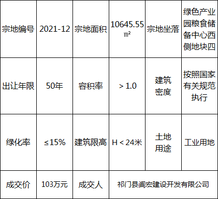 祁门县1宗工业用地成功出让,成交面积10645.55㎡