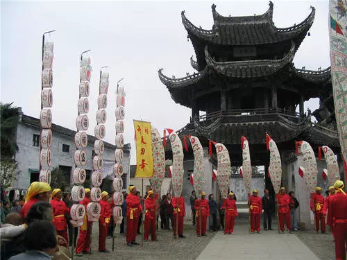 在徽州古城有知府巡街、跳钟馗、三戒碑、徽州婚嫁、敲钟祈福等活动,热闹非凡。