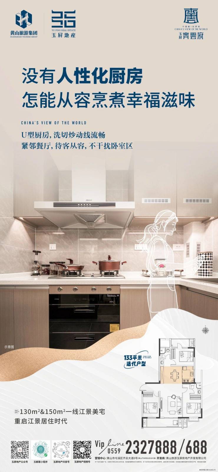 没有人性化厨房,怎能从容烹煮幸福滋味。玉屏齐云府23#楼建面约133㎡户型,U型厨房,洗切炒动线流畅,紧邻餐厅,待客从容,不干扰卧室区。玉屏齐云府23#楼,一线江景美宅,奢华入市,热售正当时!单价仅需6字头起…