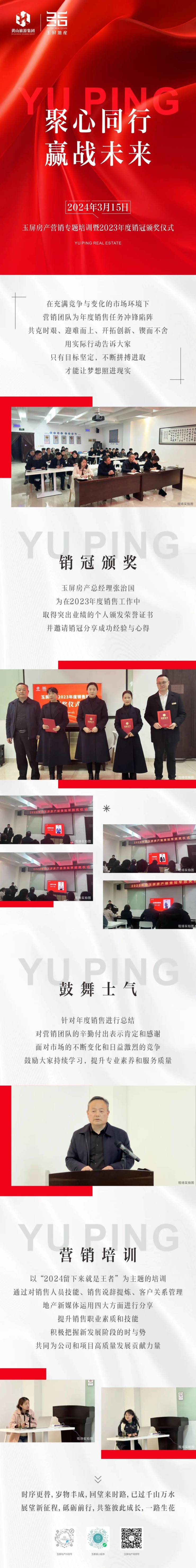 聚心同行,赢战未来!2024年3月15日,玉屏房产营销专题培训暨2023年度销冠颁奖仪式。