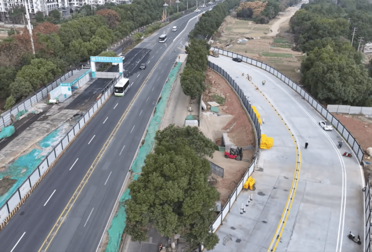 花山大桥西侧800米处一段长约100米的机动车道暂时封闭,过往车辆请从南侧新建车道通行(如图所示),春节前原道路恢复通行。请广大驾驶人注意道路变化,由此带来的通行不便,敬请谅解。