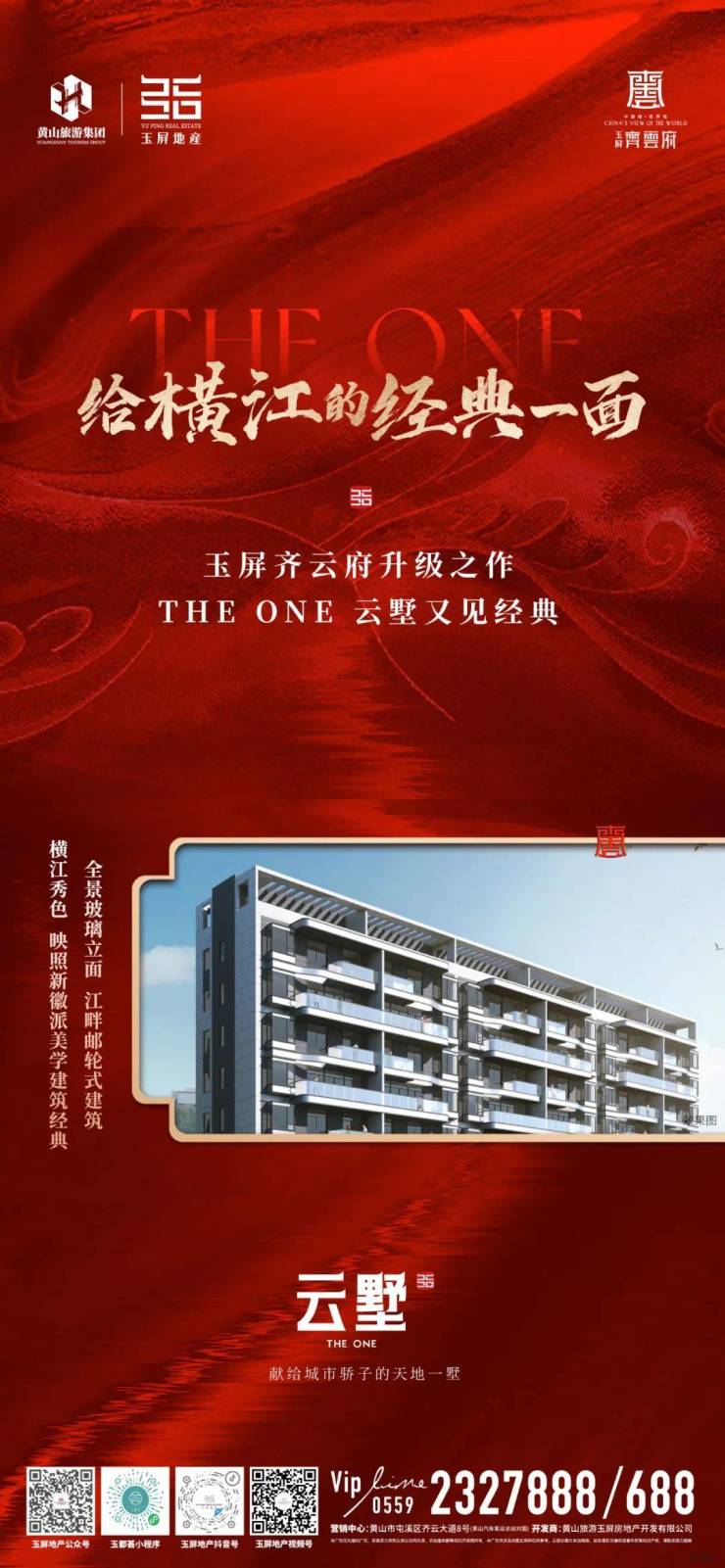 玉屏齐云府升级之作,THEONE云墅又见经典!全景玻璃立面,江畔游轮式建筑,横江秀色,映照新徽派美学建筑经典。