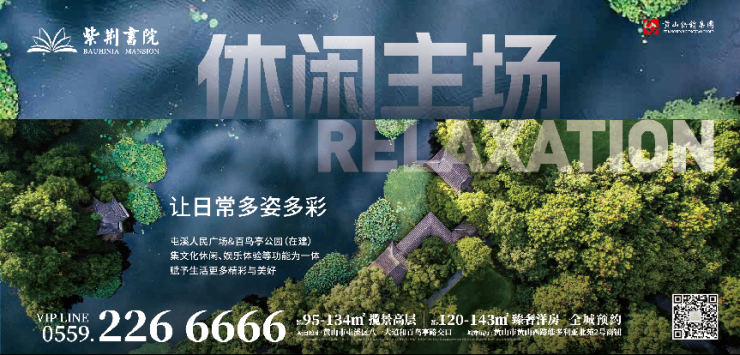 紫荆书院,人文休闲主场,让日常多姿多彩。周边屯溪人民广场&百鸟亭公园(在建),集文化休闲、娱乐体验等功能为一体,赋予生活更多精彩与美好。建面约95-134㎡揽景高层、建面约120-143㎡臻奢洋房全城预约中。