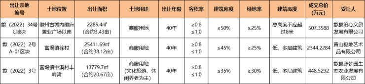 歙县3宗商服用地成交,成交总价3300万元