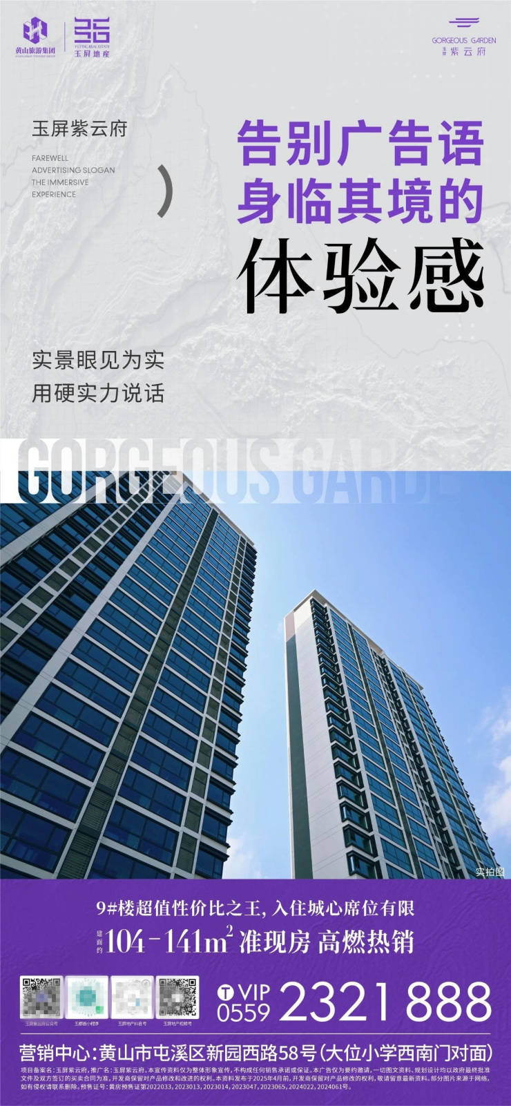 告别广告语,身临其境的体验感。玉屏紫云府,实景眼见为实,用硬实力说话。9#楼超值性价比之王,入住城心席位有限!建面约104-141㎡准现房,高燃热销。
