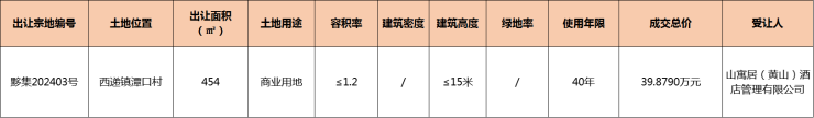 现将黟集202403号黟县集体经营性建设用地使用权挂牌成交结果公示如下:
