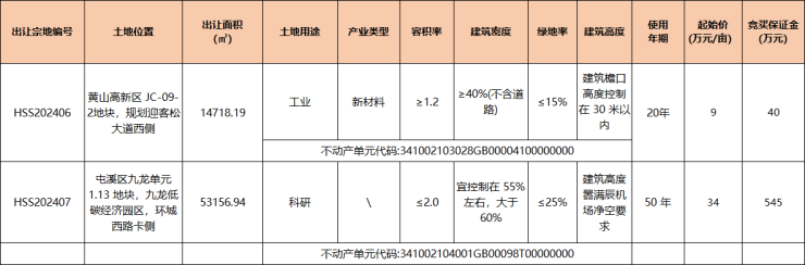 黄山中心城区1宗科研、1宗工业用地挂牌
