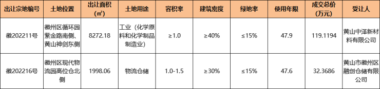 徽州区1宗工业、1宗物流仓储用地成交,出让面积合计10270.24㎡