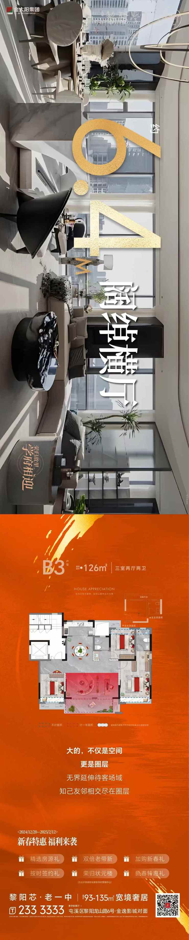 大的,不仅是空间,更是圈层,黎阳学府建面约126㎡三室两厅两卫,无界延伸待客场域,知己友邻相交尽在圈层。黎阳学府,新春特惠,福利来袭,精选房源礼;双倍老带新;加购新春礼;按时签约礼;荣归状元楼;年末特惠礼,六…