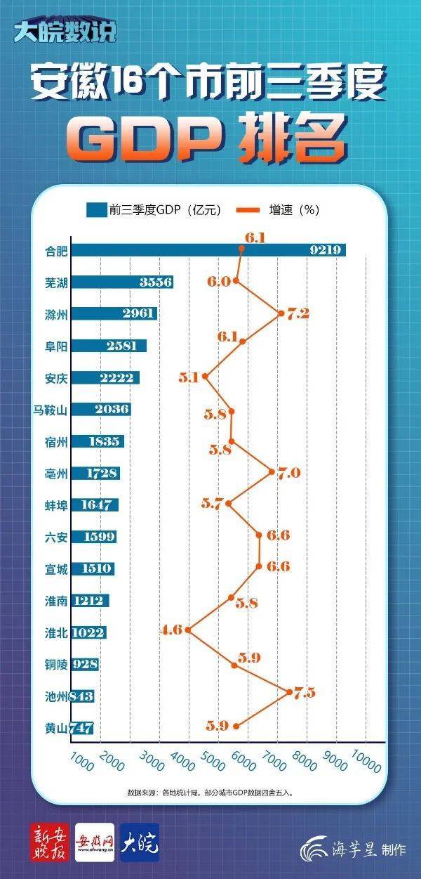 随着蚌埠市11月2日发布今年前三季度GDP及增速,安徽16个市前三季度经济运行数据全部出炉。