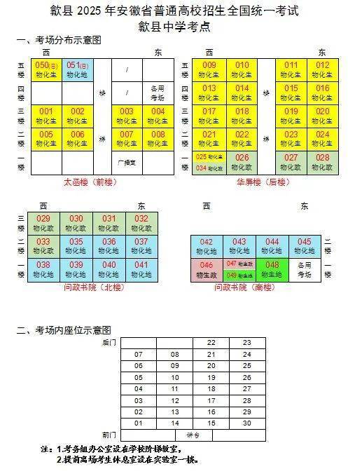 安徽省2025年普通高等学校招生统一考试将于6月7日至9日举行,根据考生规模和相关要求,我市各区县设考区,共8个考点,分别为屯溪一中、黄山一中、徽州一中、歙县中学、歙县二中、休宁中学、黟县中学、祁门一中。歙县…