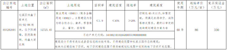 黄山中心城区1宗商业用地挂牌,起拍总价1641.5831万元