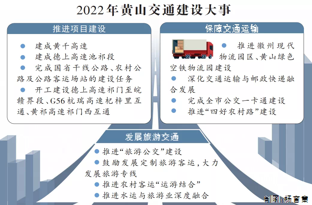 全市交通运输部门加快运输结构调整,推进徽州现代物流园区、黄山绿色空铁物流园建设,打通联运“大动脉”。