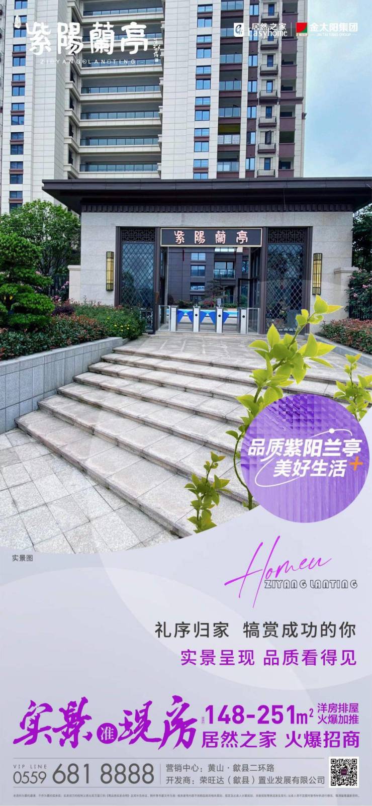 紫阳兰亭由深耕黄山的实力企业金太阳集团和中国家居行业龙头——居然之家两大企业联手开发,精工品质,追求卓越!住宅3米层高优势,冠领歙县;三玻两腔中空玻璃,有效降低室外噪音;第4代智慧停车位,空间更明亮、空气更清新、停车更便捷、归家更愉悦;泛会所空间、智能安心科技、13层外墙防护工艺、人车分流、彩虹跑道……品质亲眼可见。