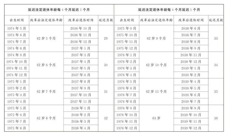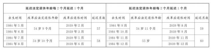 1.男职工延迟法定退休年龄对照表