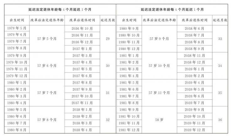 3.原法定退休年龄五十周岁的女职工延迟法定退休年龄对照表