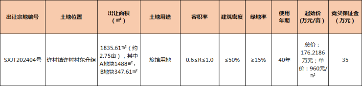 (五)SXJT202404号地块土地竞得人在竞得土地后15日内和歙县许村镇人民政府签订监管协议,凭监管协议签订出让合同。监管协议主要内容有投资强度、违约责任等(具体内容详见附件)。