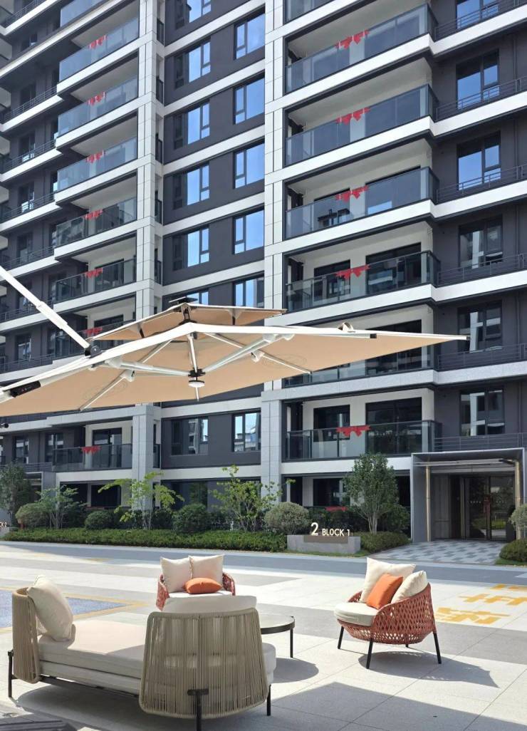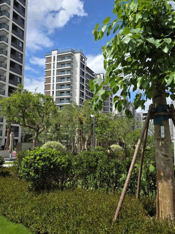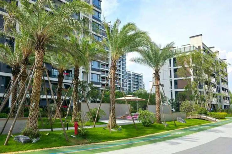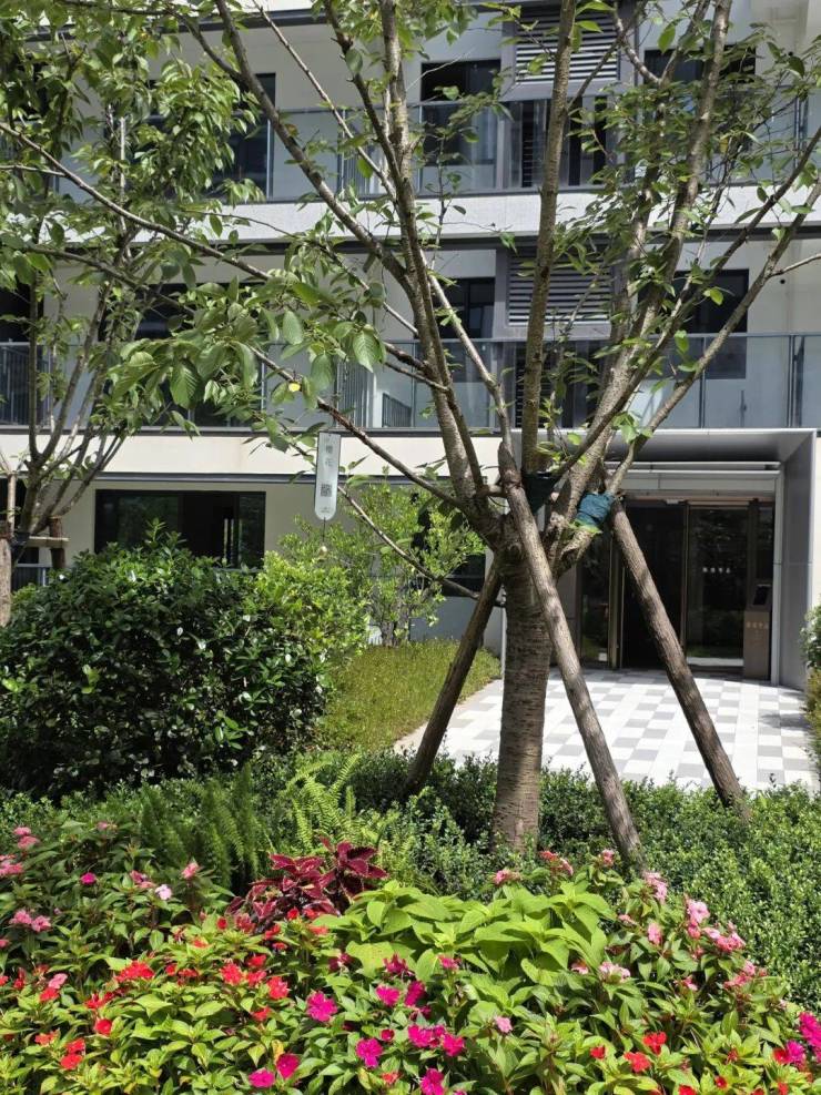 在这里,绿化不再是背景板,而是承载着文化记忆与生活美学的立体空间。寓意健康长寿的罗汉松、延年益寿的银杏、繁荣富足的加那利海枣、坚韧不拔的香樟、帝王之树的金丝楠木、多子多福的石榴等等等等,超多珍贵乔木与观花灌木科学配植,让归家成为穿越热带秘境的度假之旅 。