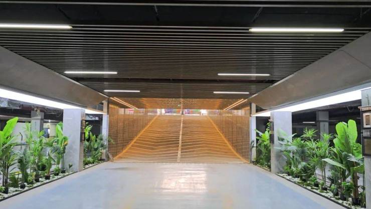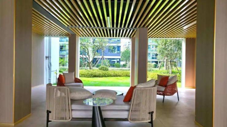 从私密性和奢适感深入考量,大门迎宾景观带尽显热带风情;地下车库的璀璨星空顶、耐磨环氧地坪漆、格栅吊顶搭配线性灯带通透明亮尽享安全;精装入户大堂+无接触人脸识别,从进入社区到步入家门,将高级质感,融入归家的视觉美感中。