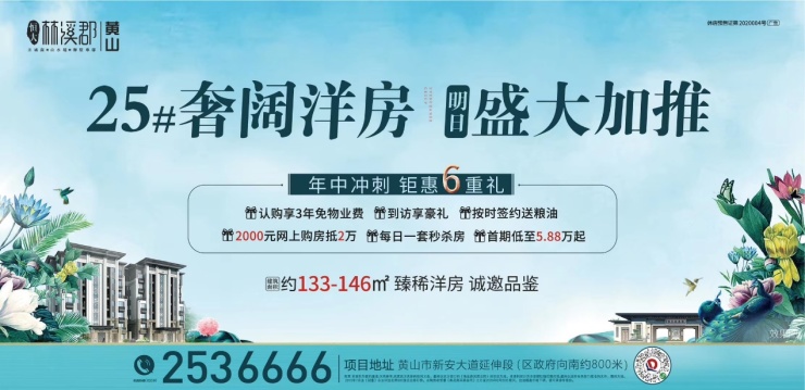 当红不让,载誉加推!黄山恒大林溪郡25#楼奢阔洋房将于6月20日盛大加推,建筑面积约133-146㎡,共计24套房源,每一席皆珍贵,更有限时钜惠6重礼,引爆年中,机会不容错过!