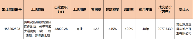 玉屏地产成功竞得黄山高新区凯悦酒店西侧地块