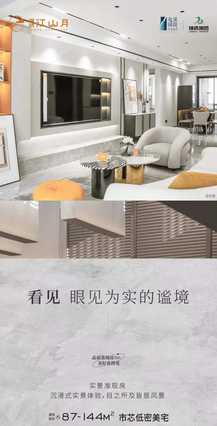 看见,眼见为实的谧境!锦绣江山月品质准现房,美好看得见。实景准现房沉浸式实景体验,目之所及皆是风景。建面约87-144㎡市芯低密美宅热售中,均价12500元/㎡。