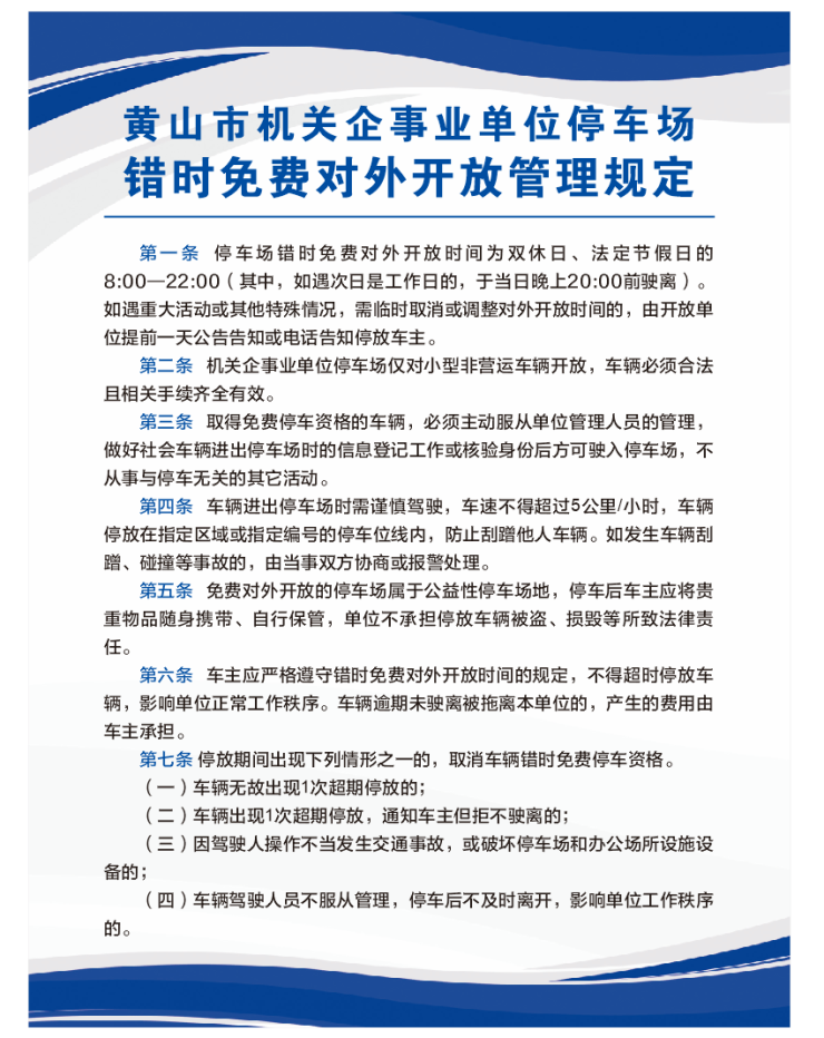 黄山市机关企事业单位停车场错时免费