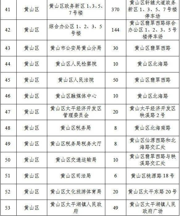 黄山区——31家单位1308个停车位