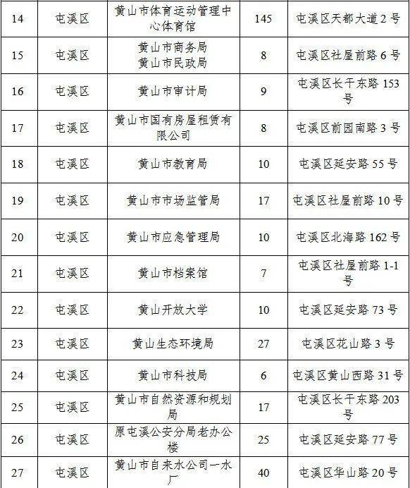 为充分利用公共资源,提高停车设施利用效率,有效缓解市民、游客停车难问题,黄山市在确保安全有序运行的前提下,“五一”假期全市192家(见下图)机关企事业单位内部停车场将错时免费对外开放,最大限度地为社会提供公共停车服务。