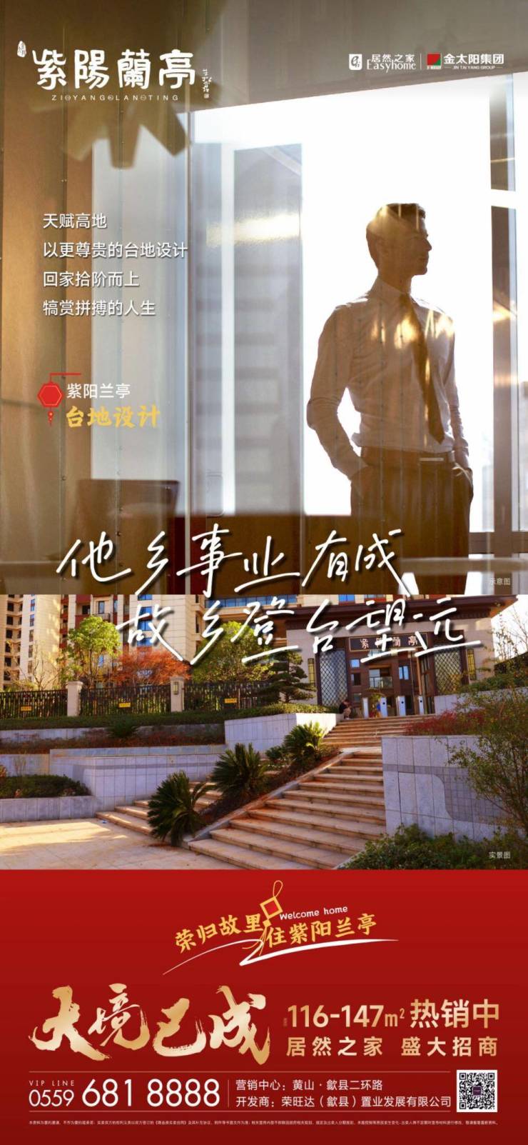 他乡事业有成,故乡登台望远。荣归故里,住紫阳兰亭,天赋高地,以更尊贵的台地设计,犒赏拼搏人生。紫阳兰亭一期已实景呈现,三期全系产品热销中,配套商业居然之家招售中。