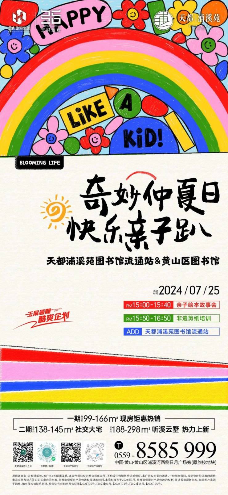 奇妙仲复日快乐亲子趴!天都浦溪苑图书馆流通站&黄山区图书馆开启亲子活动。7月25日PM15:00-15:40亲子绘本故事会、PM15:50-16:50非遗剪纸培训等你来酷爽一夏。天都浦溪苑一期建面约99-16…