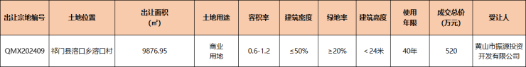 祁门1宗商业用地成功出让