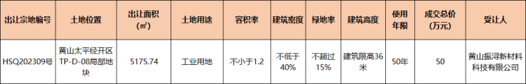 黄山区1宗工业用地成交