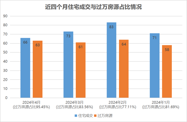 2、从物业类型来看:住宅成交66套,占比94.29%;联排、叠屋成交4套,公寓、商铺、写字楼、办公类房源零成交。