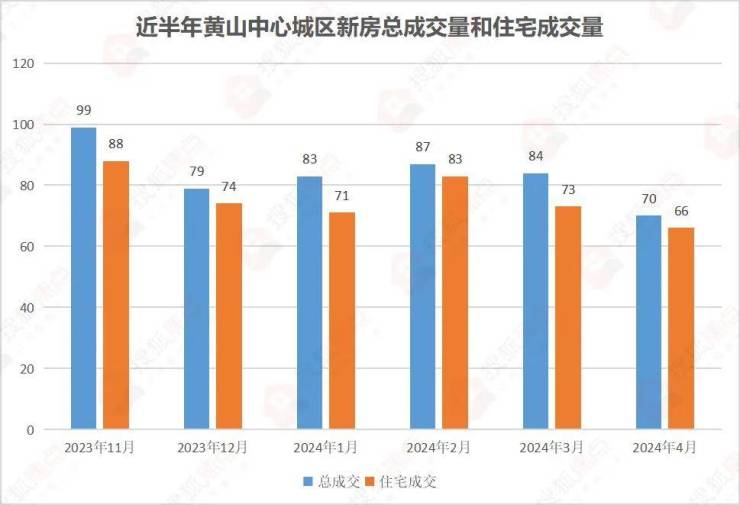 2024年4月,黄山中心城区新房共计成交70套,环比3月的84套下降16.67%,同比去年的101套下降30.69%,市场仍在承压。