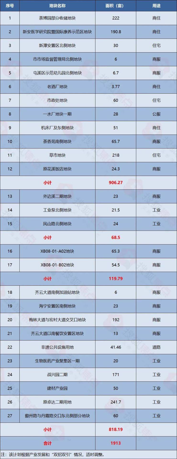 2024年4月15日,黄山市自然资源和规划局网站公布《2024年度市中心城区土地出让计划》,共27宗地块计划出让,合计1913亩。其中,涉宅用地7宗,合计775.57亩;商服用地11宗,合计479.5亩,工业用地7宗,合计588.2亩;道路用地1宗,合计41.46亩,公服用地1宗,合计28亩。