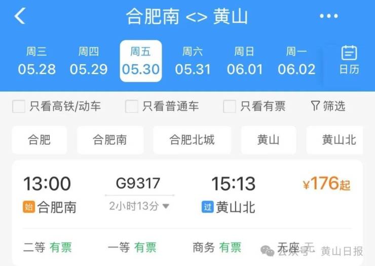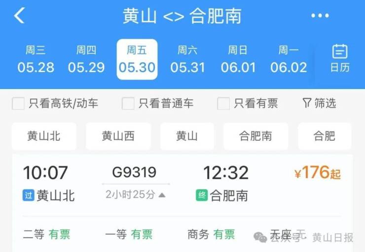 途经:黄山西、九华山、池州、安庆、黄梅东、武穴北、蕲春南、浠水南、黄冈东、黄冈西
