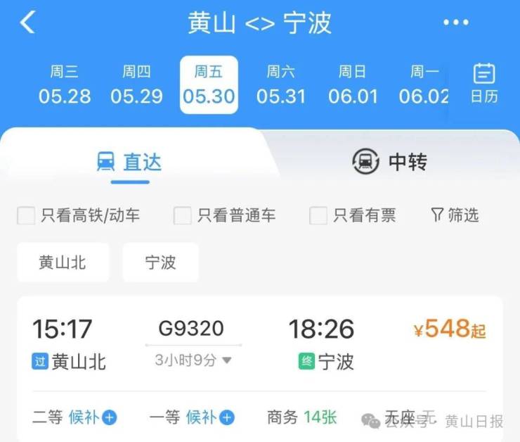 途经:绩溪北、千岛湖、建德、桐庐、富阳、杭州南、绍兴北、绍兴东、余姚北