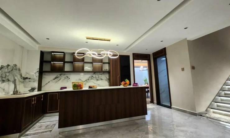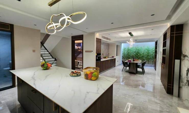 当紫阳兰亭业主穿过自家花园推开门,即可见一层约3.8米层高生活空间,客厅、餐厅与厨房一体化设计,带来的通透开阔感,彰显了主城排屋才有的气场。