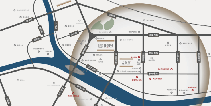 文澜轩的优越不止于教育。项目周边商业氛围浓厚,百大商厦、大润发商业步行街等举步即达,一站式满足购物、娱乐、餐饮需求,繁华与便利日常可享。黄山路、新园路、长干路等多条主干道交织,快速连接全城,通勤高效无忧。同时,文澜轩身处自然环抱之中——新安江畔举步即至,戴震公园、荷花池公园、仙人洞公园等均在2公里范围内,推窗见绿、漫步即景,为居者提供静谧与活力并存的生活场域。