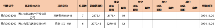 11月黄山主城2盘获预售证,新增可预售住宅房源22套