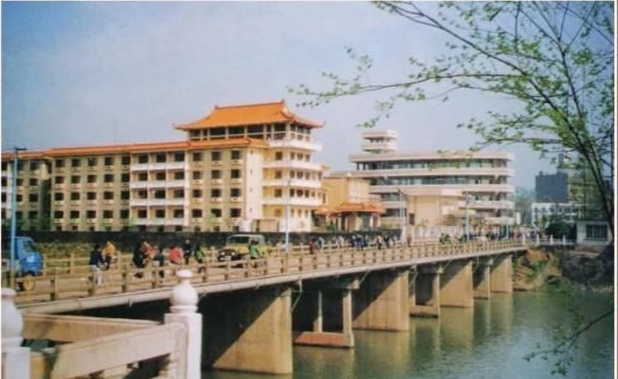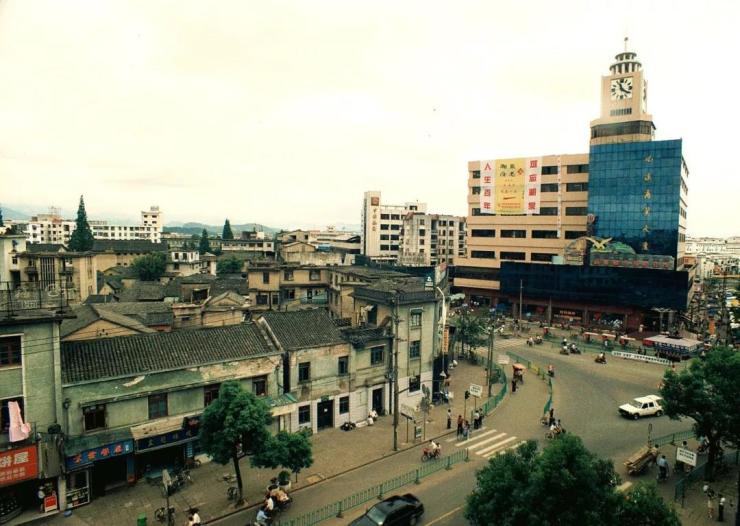 黄山百大最早叫商业大厦,1987年屯溪商业大厦是屯溪的地标性建筑,大厦的周围是邮政局、新华书店、老汽车站等,昱中花园当时还没建,黄山路较窄,机非混行,街上车辆少,行人也不多。如今更名为黄山百大商厦,以百大为核心的城市排名前列商圈更加繁华。