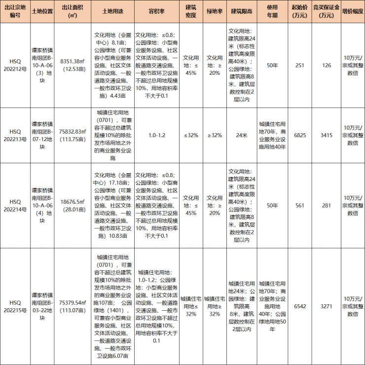 经研究决定,现将HSQ201212、HSQ201213、HSQ201214、HSQ201215号地块挂牌出让的截止时间延期至2022年11月18日上午10时,报名截止时间(即竞买保证金到账截止时间)延期至2…