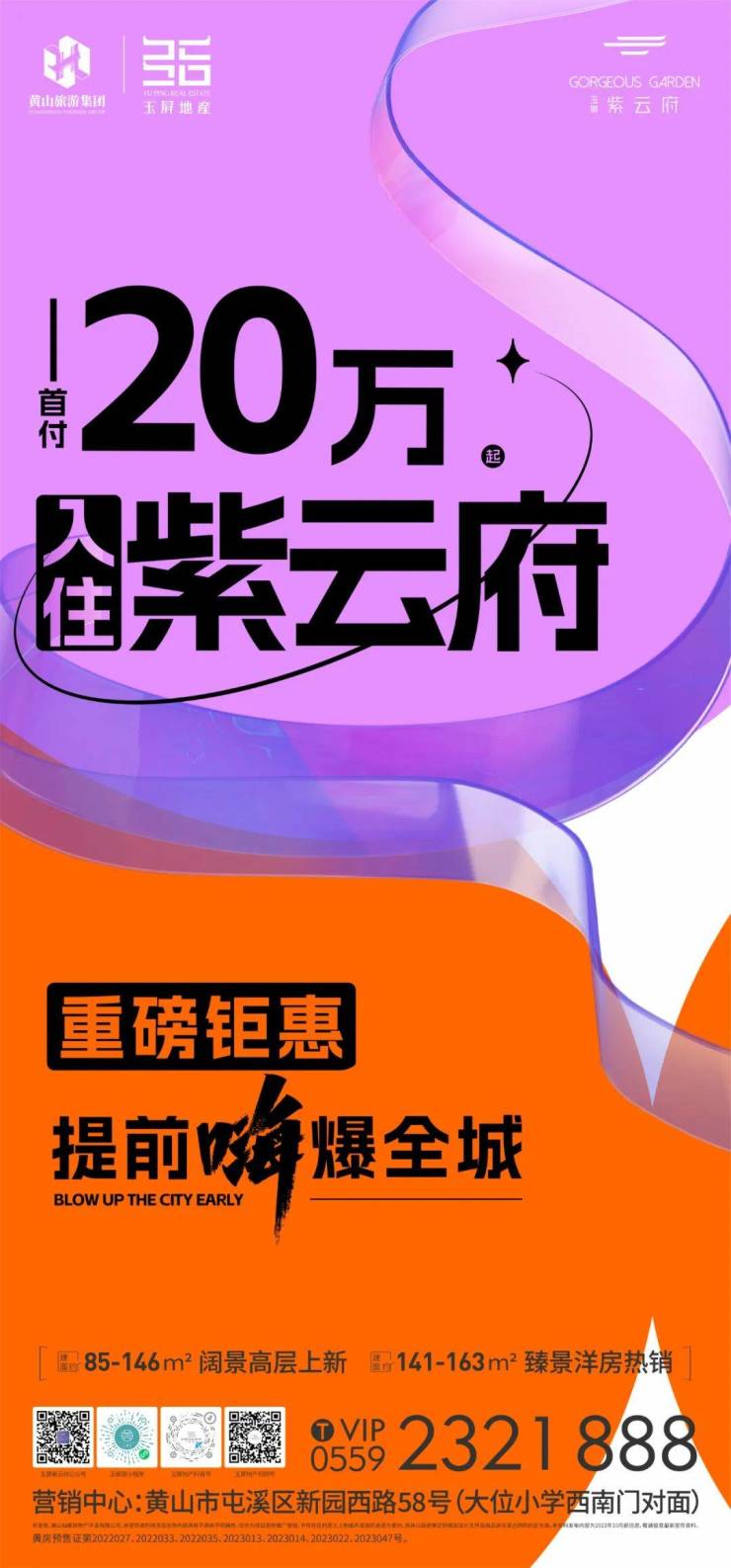 重磅钜惠,提前嗨爆全城!/p>玉屏紫云府建面约85-146㎡阔景高层上新,建面约141-163㎡臻景洋房热销。…