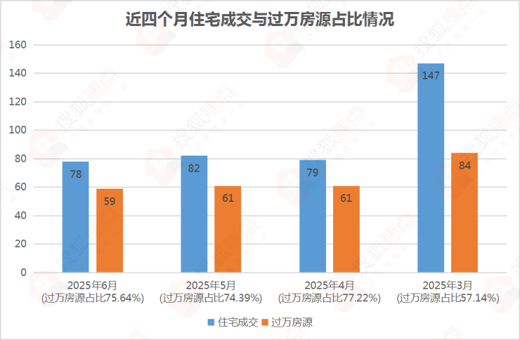 2025年6月,普通住宅成交78套,占比超95%。成交均价为10400元/㎡,较4月的10450元/㎡微降,价格基本趋于稳定。