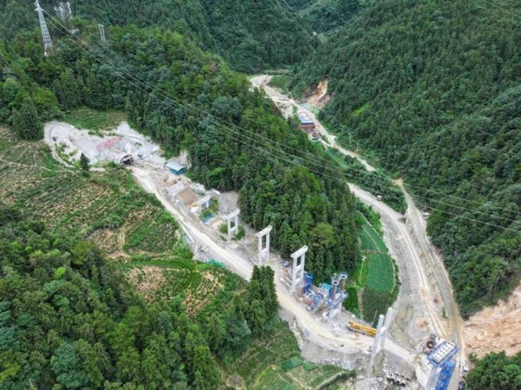 在省道F007歙县长陔岭隧道及接线工程施工现场,机械轰鸣声此起彼伏,隧道内挖掘机正开足马力持续作业,工人们头戴安全帽在各自岗位上忙碌有序,热火朝天的建设氛围扑面而来。