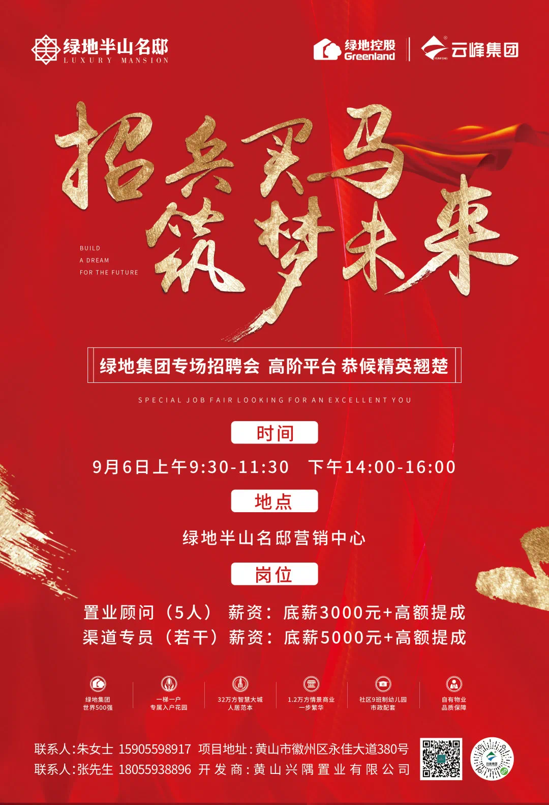 招兵买马 | 绿地9.6日专场招聘会,“职”为超越更出众的你