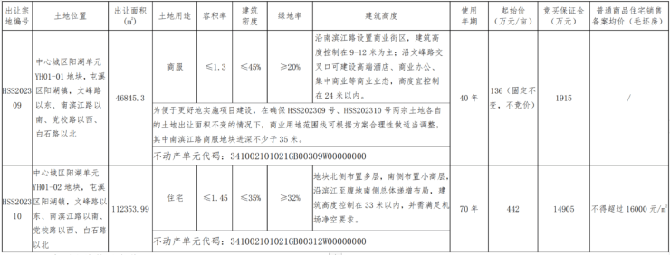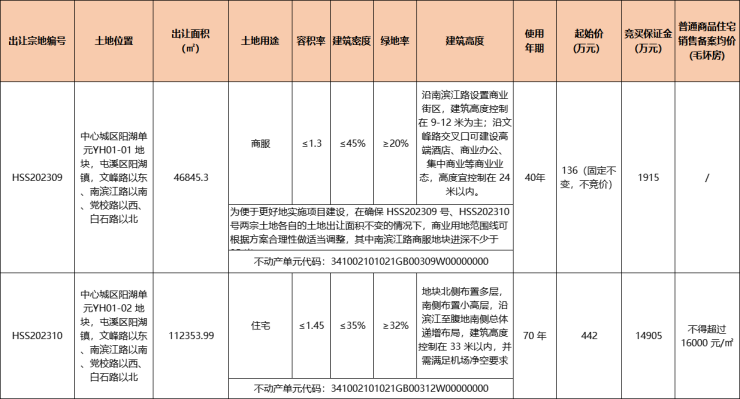 2、HSS202309号、HSS202310号两宗土地以搭配方式出让,即土地竞买人须同时申请竞买上述两宗土地,同时报价、同时竞得,不单独接受上述任意一宗土地的竞买申请。